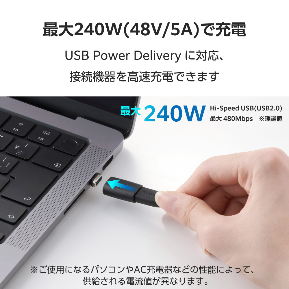 USB Power Deliveryに対応し、最大240W(48V/5A)で接続機器の充電が可能です。