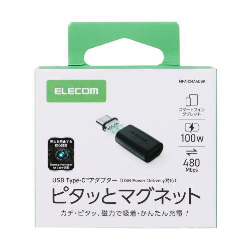 USB-C マグネット 変換アダプタ 100W PD対応 着脱式コネクタ ブレーカー内蔵 ブラック MPA-CMAADBK