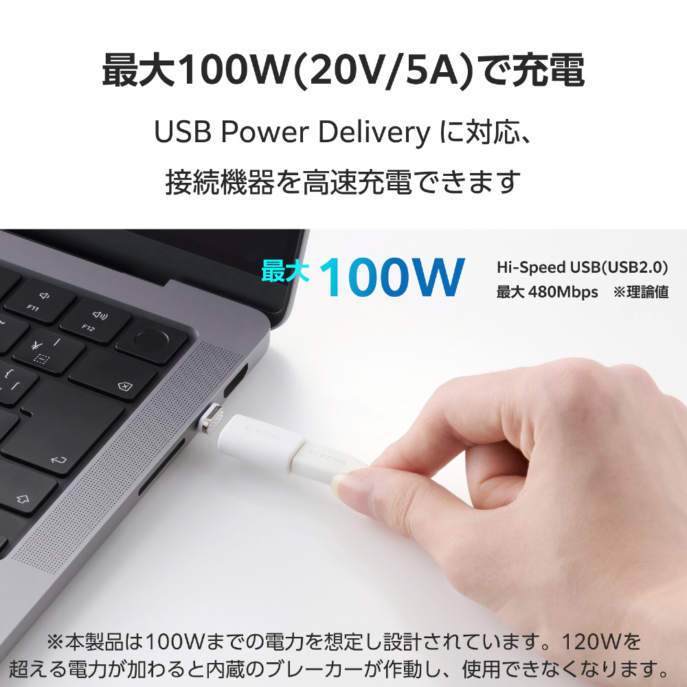 USB-C延長アダプタ [USB-C オス→メス USB-C /充電 /転送 /PD100W /USB2.0] マグネット脱着式 ホワイト MPA-CMAADWH