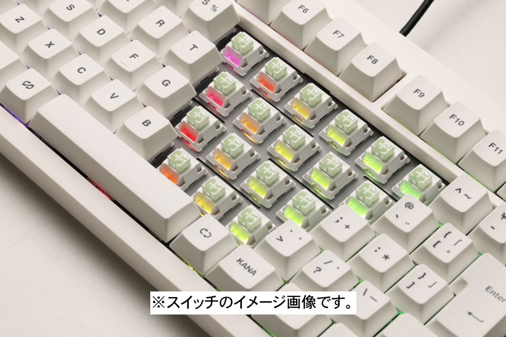 PBT素材・昇華印刷を採用したキーキャップは、汚れにくく長期間使用しても印字が消えにくい、非常に優れた耐久性と快適な打鍵感が特徴です。