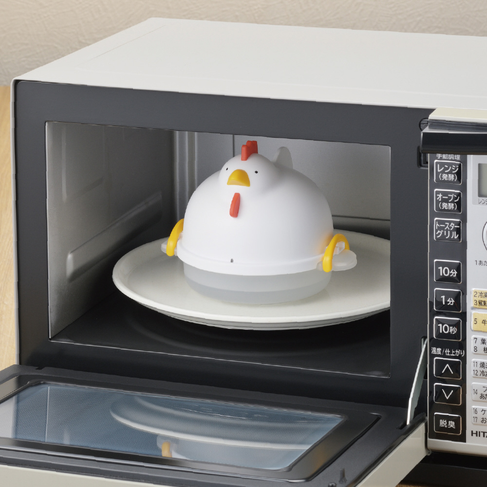 レンジでらくチン!ゆでたまご にわとり型 4個用 ホワイト RE-1506
