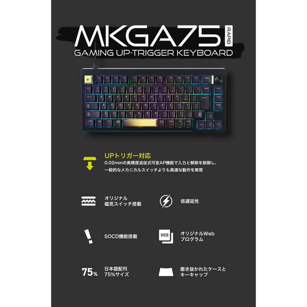 ゲーミングキーボード(ラピッドトリガー対応) ブラック UP-MKGA75MTL-RT-J/B [有線 /USB]