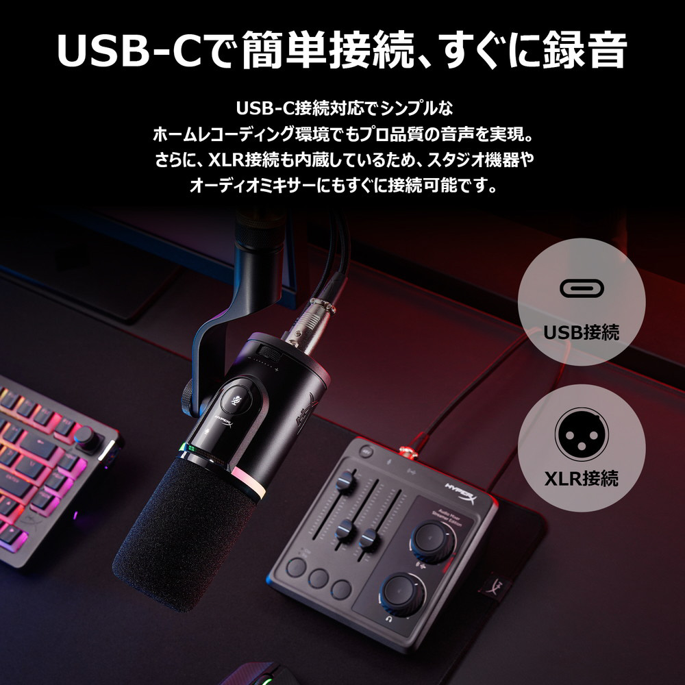 HyperX FlipCastは、 XLRとUSB-Cの両方に対応したフロントアドレス型のダイナミックマイクです。