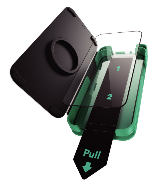 付属UltraFitトレイが正確な位置合わせを可能にし、ホコリ除去、静電吸着技術により、気泡・ホコリ混入のない簡単な取り付けがたったの数秒で行えます。