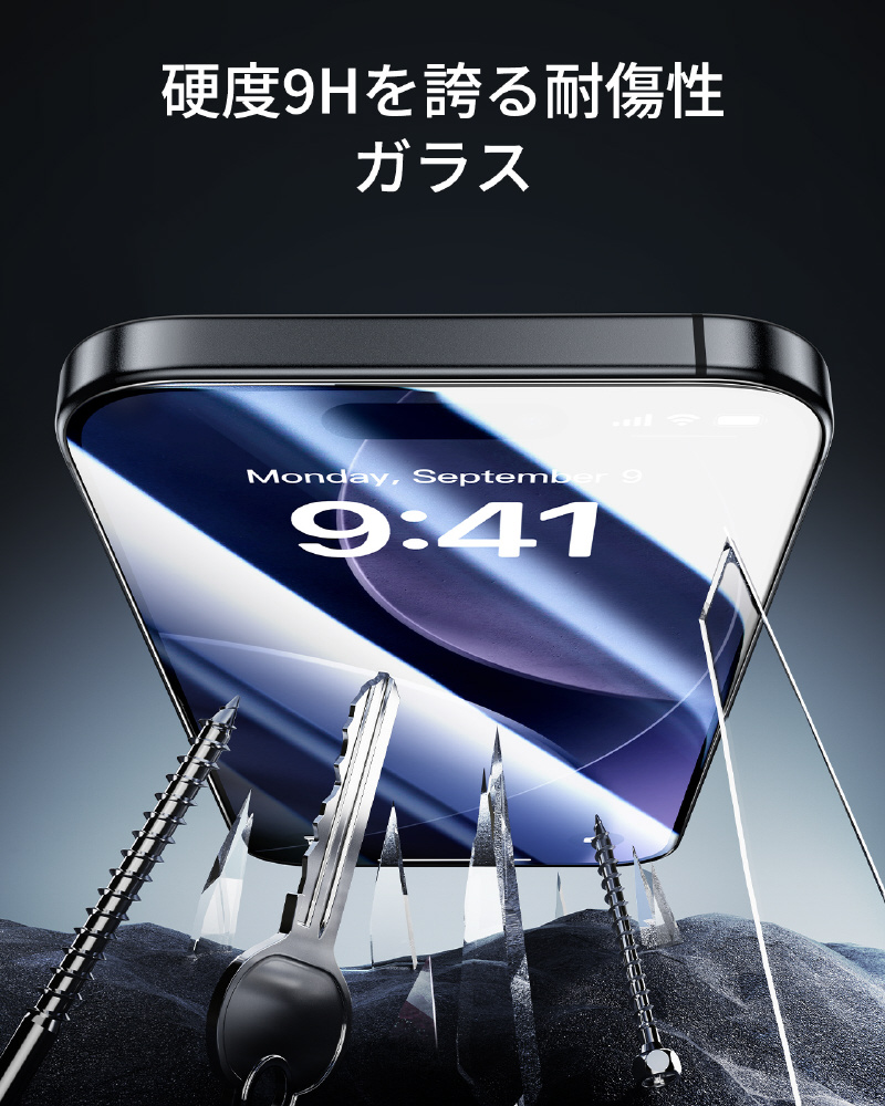 iPhone 17 Pro(6.3インチ) 自動ホコリ除去UltraFitトレイ付 光沢 Armorite7倍強度ガラスフィルム(2枚入り) 1D88800201-2Pack