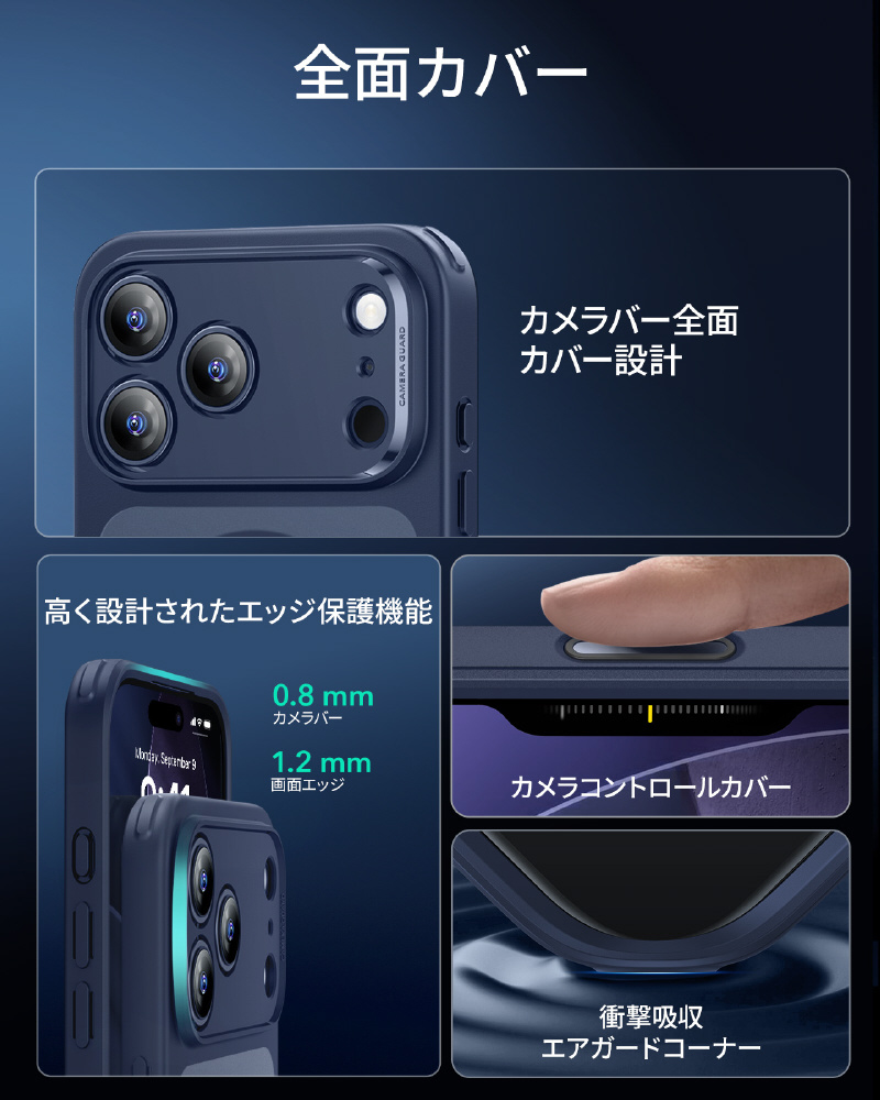 革新的なカメラコントロールボタンを専用カバーで守りながら、指先に伝わるプロ級の操作感をそのまま体感できます。スライド時の滑らかな動きから押圧時の確かな反発感まで、本体と遜色ない精密なタッチレスポンスを実現します。ボタン周辺の隙間を完全に封鎖する設計で、ほこり侵入を徹底シャットアウトします。精密センサーを埃のストレスから守り、シャッターチャンスを逃さない快適操作を長く支えます