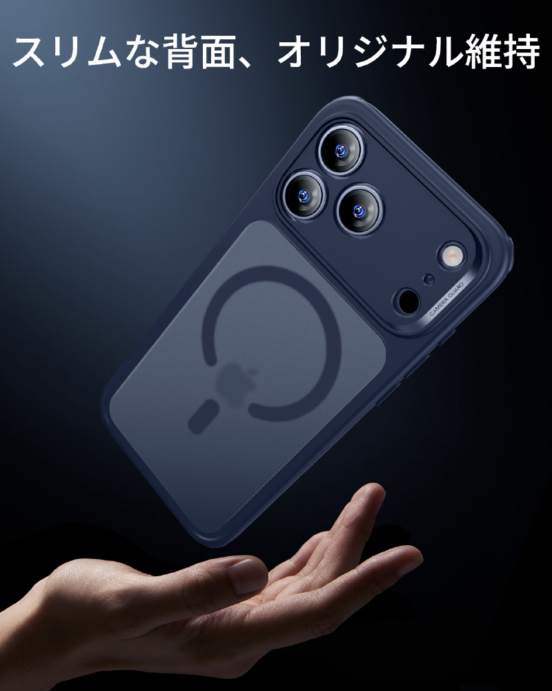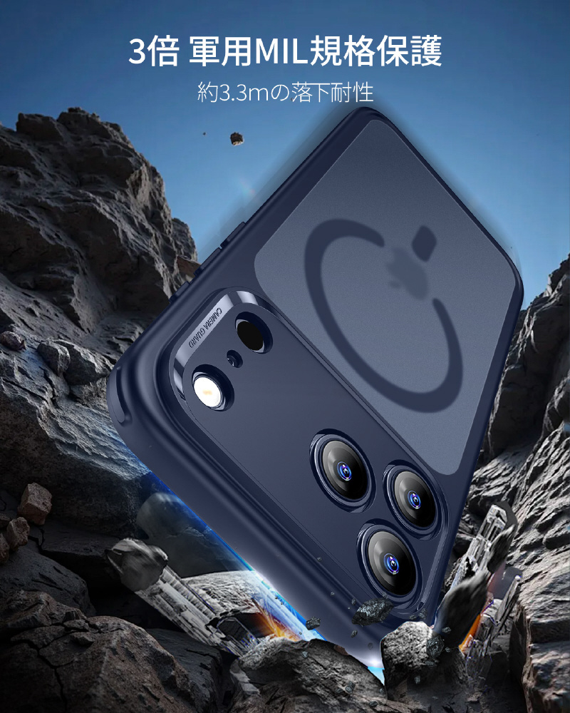米軍規格MIL-STD-810Hの落下試験に合格したエアガードコーナー(認証番号:GZMR231203686802)を採用します。コンクリートへの高さ3.3メートル落下テストにも耐える設計で、駅のホームでの使用や登山中など、アクティブなシーンでも安心できます。うっかり落とした時も、大切なiPhoneを確実にプロテクトします