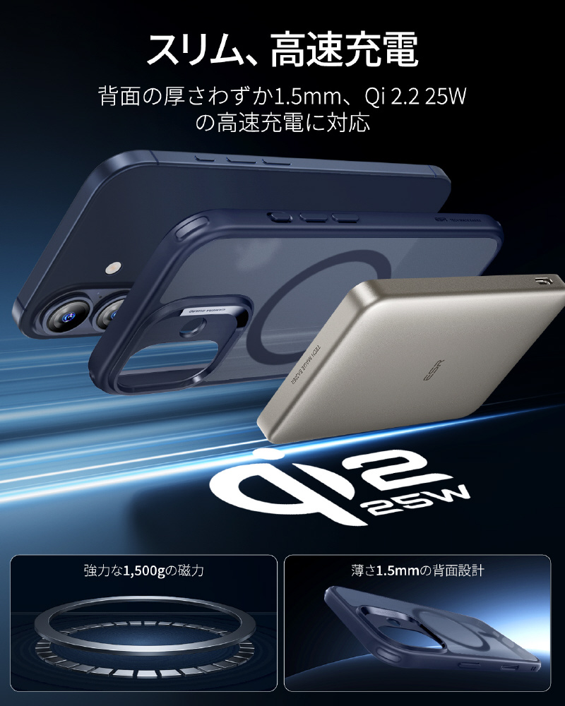 やアクセサリーが瞬時に「ピタッ」と吸着するため、満員電車や急いでいる時でも位置調整の手間が不要です。充電中のずれ落ちやアクセサリーの外れが心配ない設計で、移動中やアウトドアでの利便性が格段に向上します