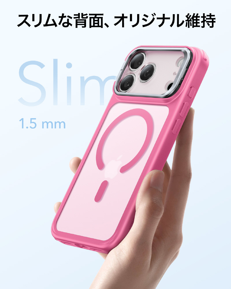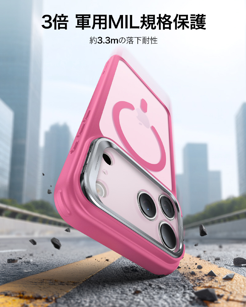 iPhone 17 Pro (6.3インチ)MagSafe対応、隠れスタンド付き、ミリタリーグレードケース フロストピンク 1A86700501-Frosted Pink