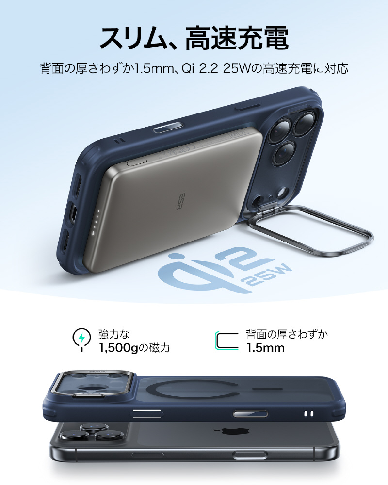 内蔵のN52M強力磁石と薄さ1.5mmのバックパネルが、最大25W充電対応の高速かつロスなしのMagSafe充電を実現します。さらに、このiPhoneケースは厳選素材と独自の抗黄変配方で、複合バックパネルと表面4H硬度処理により、長期間使用でも黄ばみやキズ(鍵やコインなども)に強く、いつまでも新品のような美しさを保ち続けます