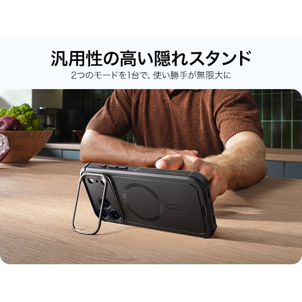 iPhone 17 Pro Max (6.9インチ)MagSafe対応、隠れスタンド付き、3層構造衝撃吸収ハイブリッドケース ESR ブラック 1A88200101-Black