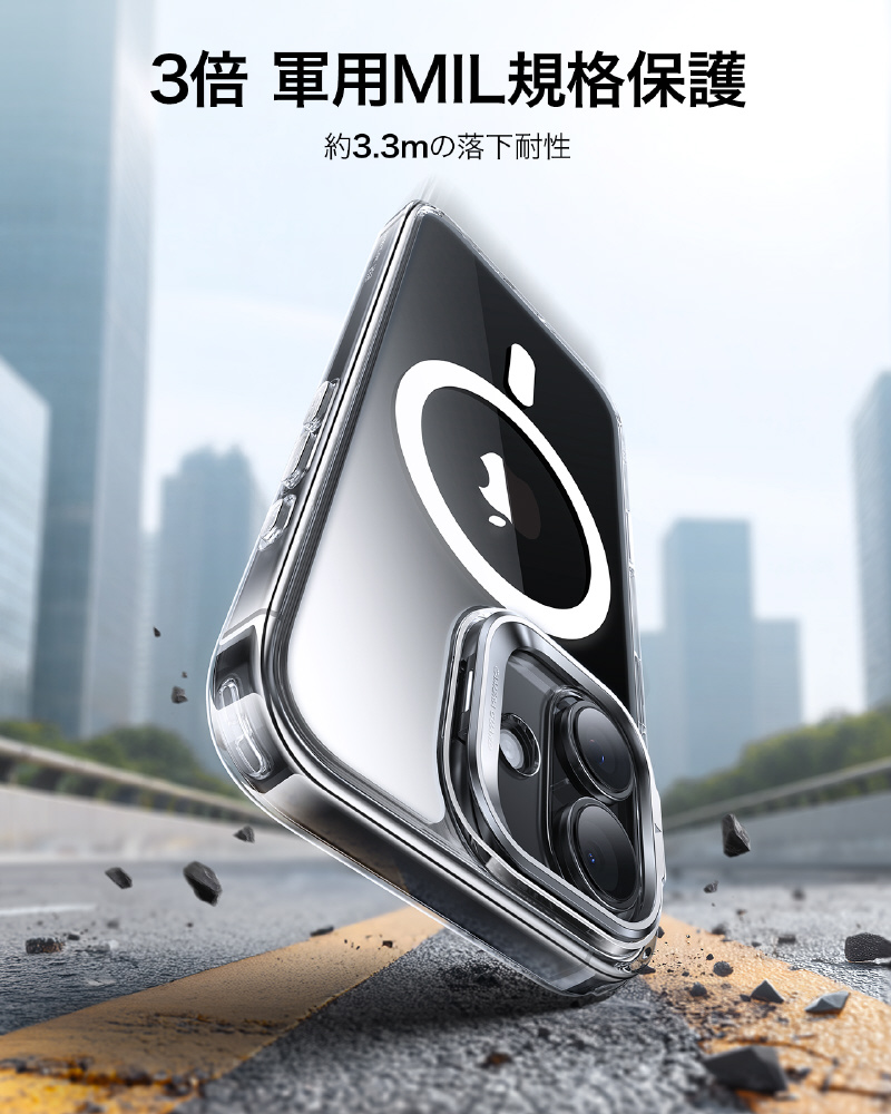 「また落とした!? 修理代、いくらかかるの…」そんな心配はもう不要です。このiPhone 17 ケースは四隅に衝撃吸収エアバッグを採用し、厳しいSGS軍規格認証(米軍規格MIL-STD-810H)も取得し、過酷な状況にも耐える強度で、高価なスマホを完璧にガードできます。思いがけない衝撃から守り、あなたの財布も守る心強い相棒です