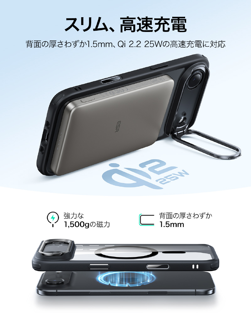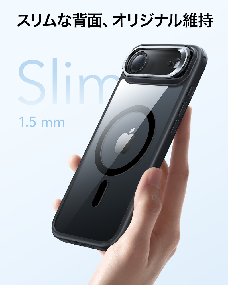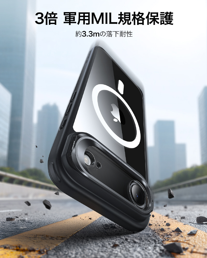 iPhone Air (6.5インチ)MagSafe対応、隠れスタンド付き、ミリタリーグレードケース クリアブラック 1A86600301-Clear Black