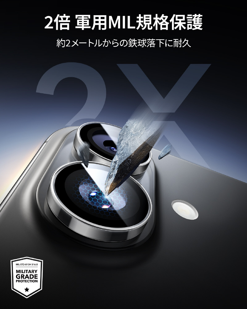 仕様1 頑丈な強化ガラスでレンズを傷や衝撃から保護し、いつでも高品質の写真を。