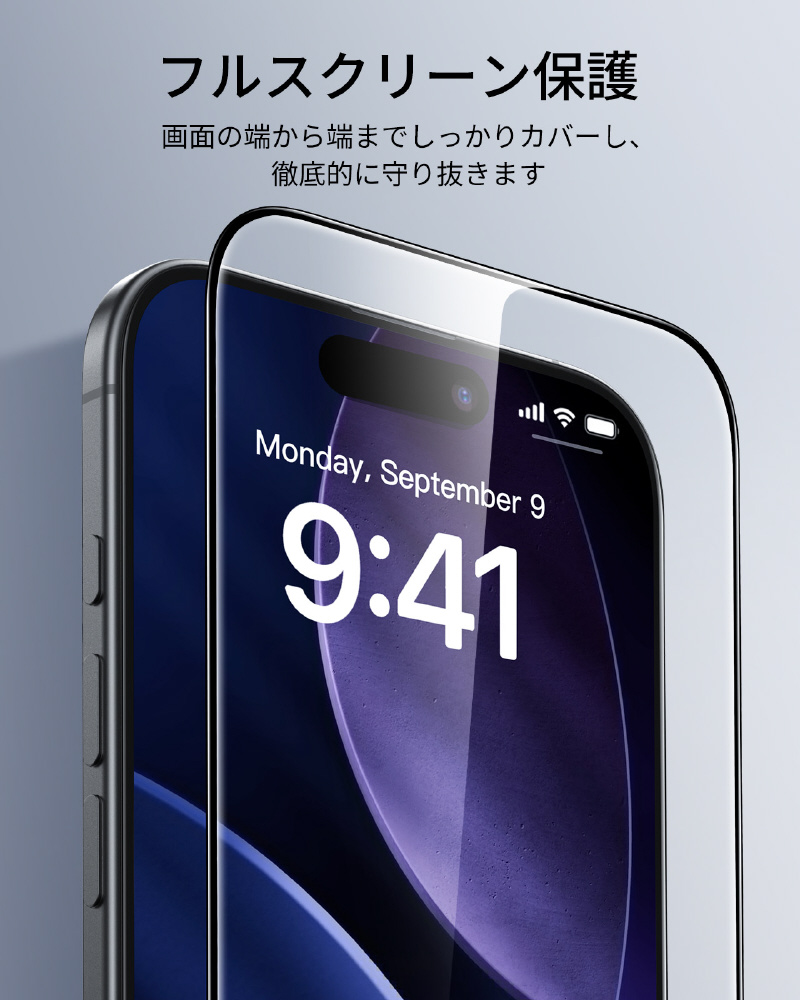 仕様2 保護フィルムの高度なマイクロナノ粘着技術により、透明な画面の品質を維持しながら、気泡やほこりのない完璧貼付けを可能にします。