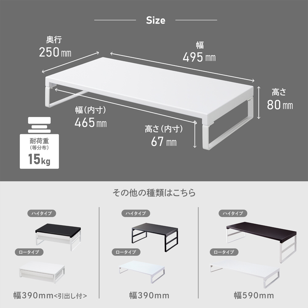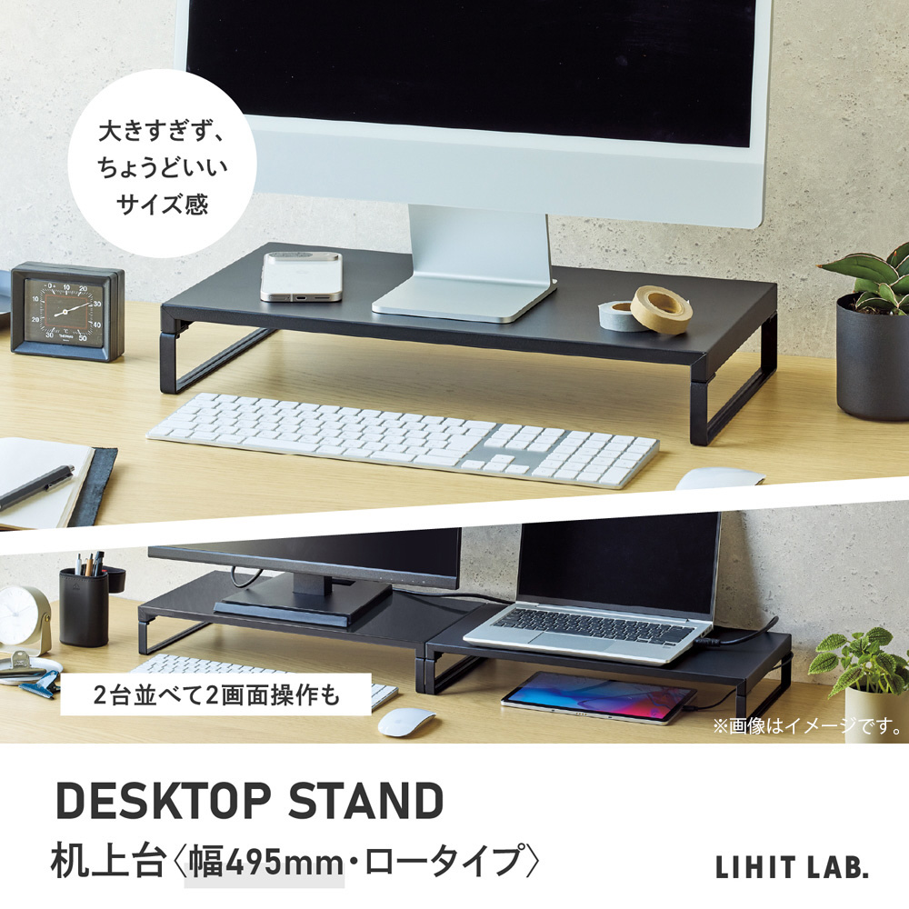 モニター台やPCスタンドに使える机上台。フルサイズキーボードがぴったり収まる幅495mmタイプ。