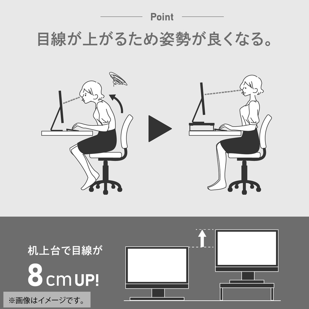 台の上にパソコンのモニター、台の下にはキーボードが収納でき、デスクの有効スペースが広がります。
