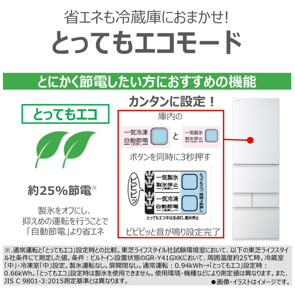 冷蔵庫 VEGETA(ベジータ)GXKシリーズ グランホワイト GR-Y41GXKL-EW [幅60cm /411L /5ドア /左開きタイプ /2025年]