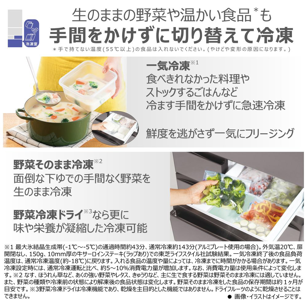 *運転状況や食品の種類、状態や量により、効果は異なります。東芝調べ。