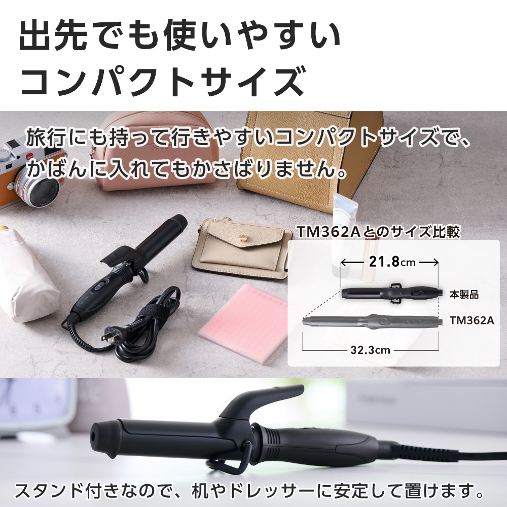カールアイロン ミニ 軽量 コテ 25mm ヘアアイロン コンパクト 海外対応 持ち運び便利 前髪 ショート ボブ対応 190℃ ナノセラミックコーティング 旅行 ブラック TM122A-K