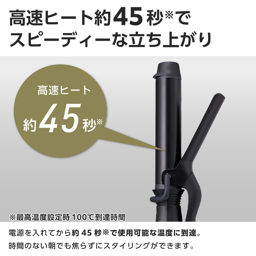 電源ONから約45秒で立ち上がるから、 忙しい朝でも快適にご利用いただけます。 ※最高温度設定時の100℃到達時間