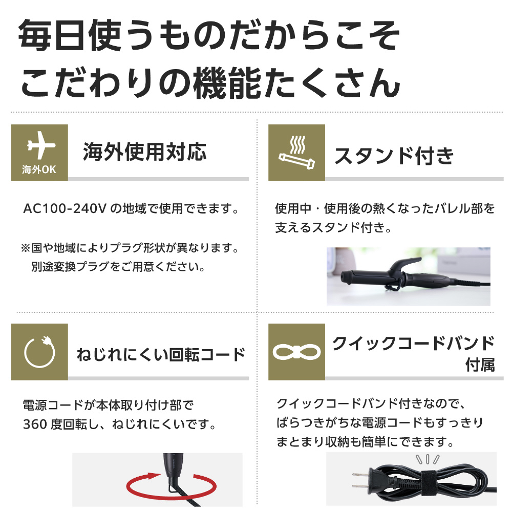クイックコードバンド付きなので、ばらつきがちな電源コードもすっきりまとまり収納も簡単にできます。