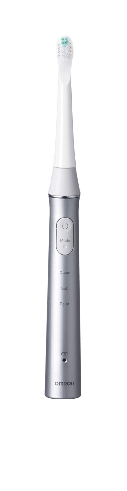 オムロン独自のブラシの前後方向の動きで歯と歯のすき間や凹凸部の汚れをしっかり落とせる【タテ振動】と、歯の表面をキレイにし歯と歯ぐきの境目や歯周ポケットの汚れをしっかりかき出せる【ヨコ振動】の微細な振動で、しぶきの飛び散りが少ない。