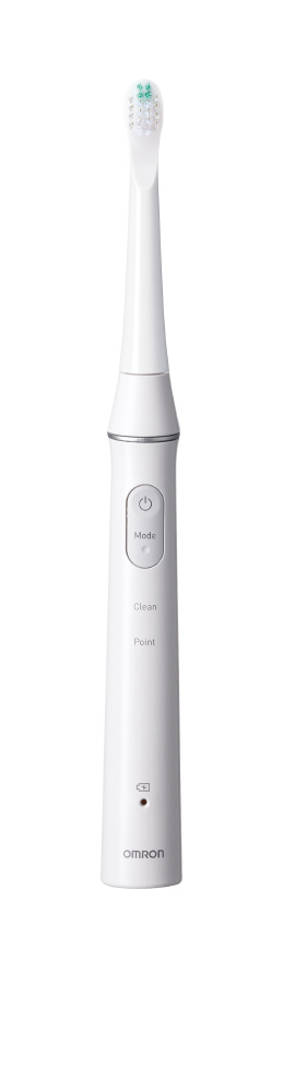 オムロン独自のブラシの前後方向の動きで歯と歯のすき間や凹凸部の汚れをしっかり落とせる【タテ振動】と、歯の表面をキレイにし歯と歯ぐきの境目や歯周ポケットの汚れをしっかりかき出せる【ヨコ振動】の微細な振動で、しぶきの飛び散りが少ない。
