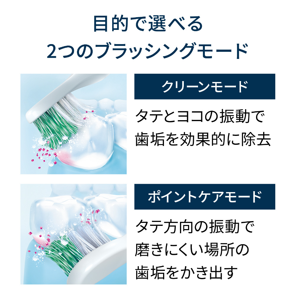 2つのブラッシングモード搭載(クリーンモード、ポイントケアモード)