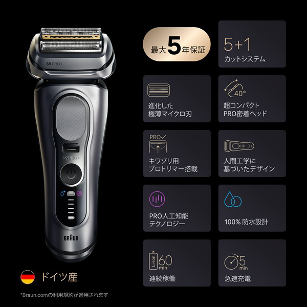 ブラウン史上最高の電気シェーバーシリーズ9 PRO+は究極の深剃り、精密なシェービングを実現。