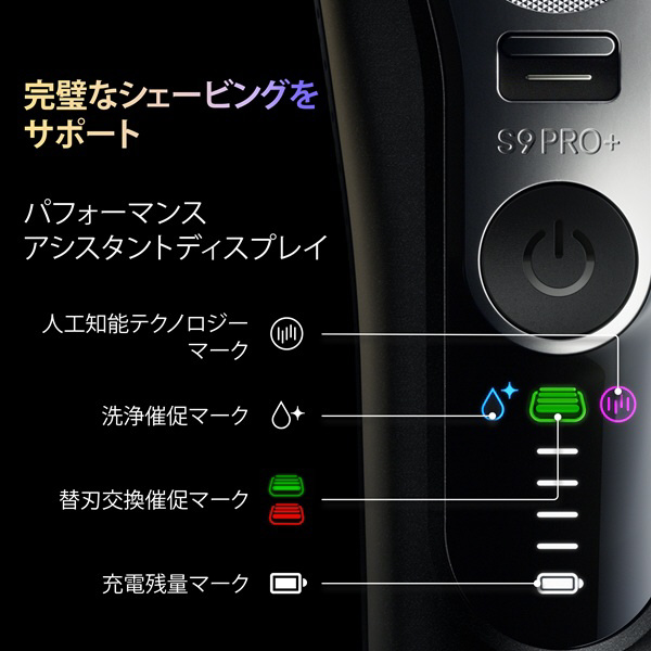 高精度スマートセンサーを搭載したPRO人工知能テクノロジーはヒゲの密度を約2倍の速さ*(前モデルのS9 PRO+と比較して)でスキャンし、パワーを最適化。