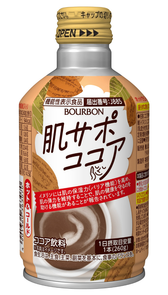 「肌の保湿力(バリア機能)を高め、肌の弾力を維持することで、肌の健康を守るのを助ける」機能があることが報告されているイヌリンを配合した、ココア飲料です。