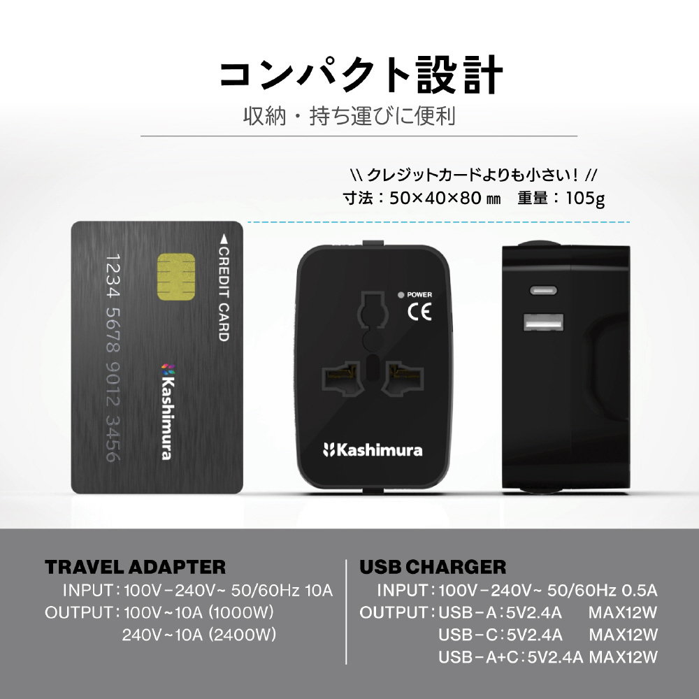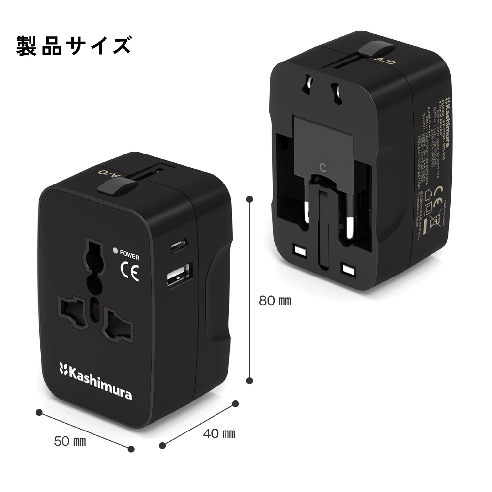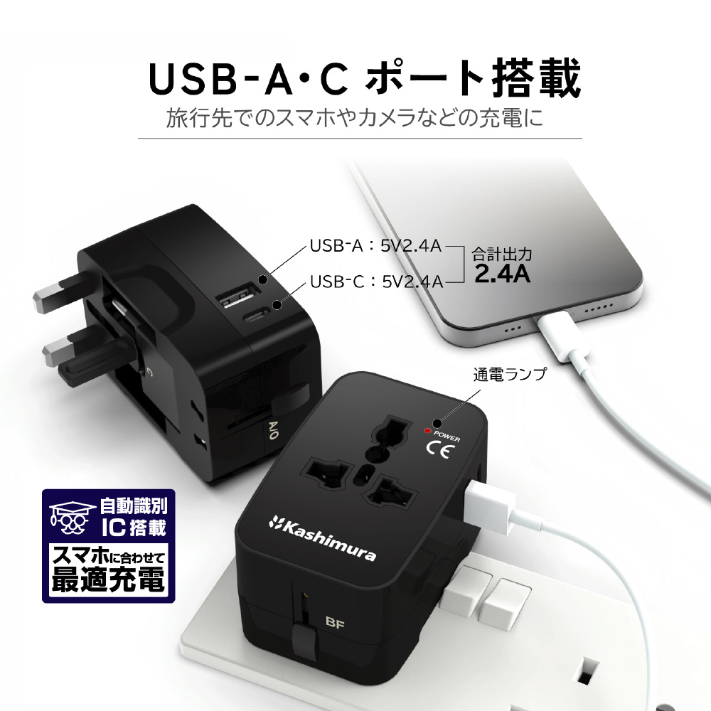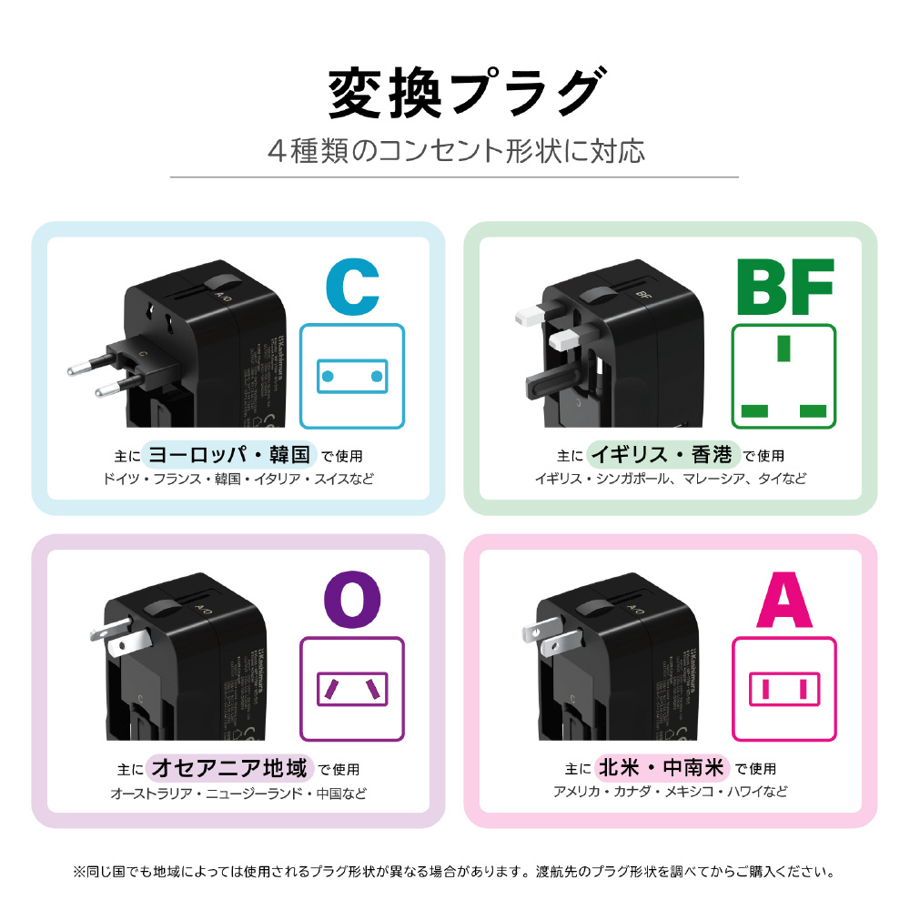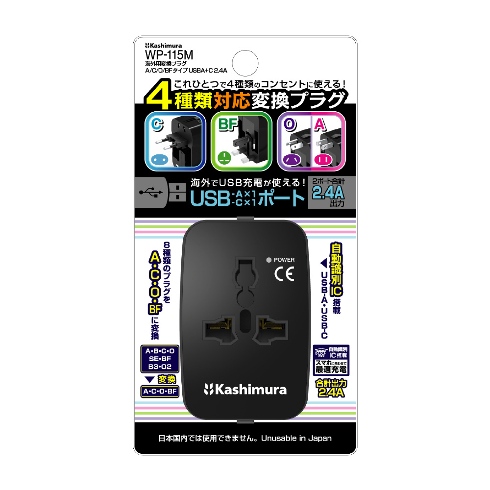海外用変換プラグ A/C/O/BFタイプ USBA+C 2.4A WP-115M