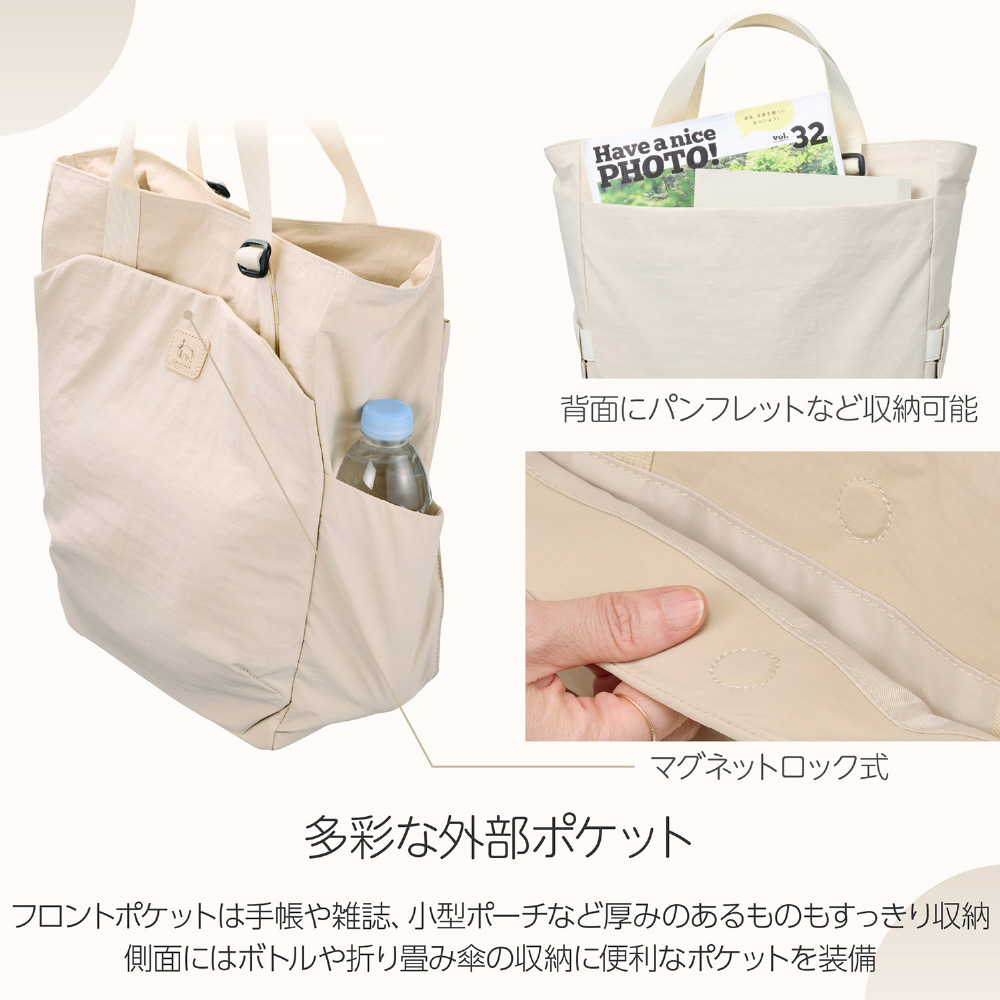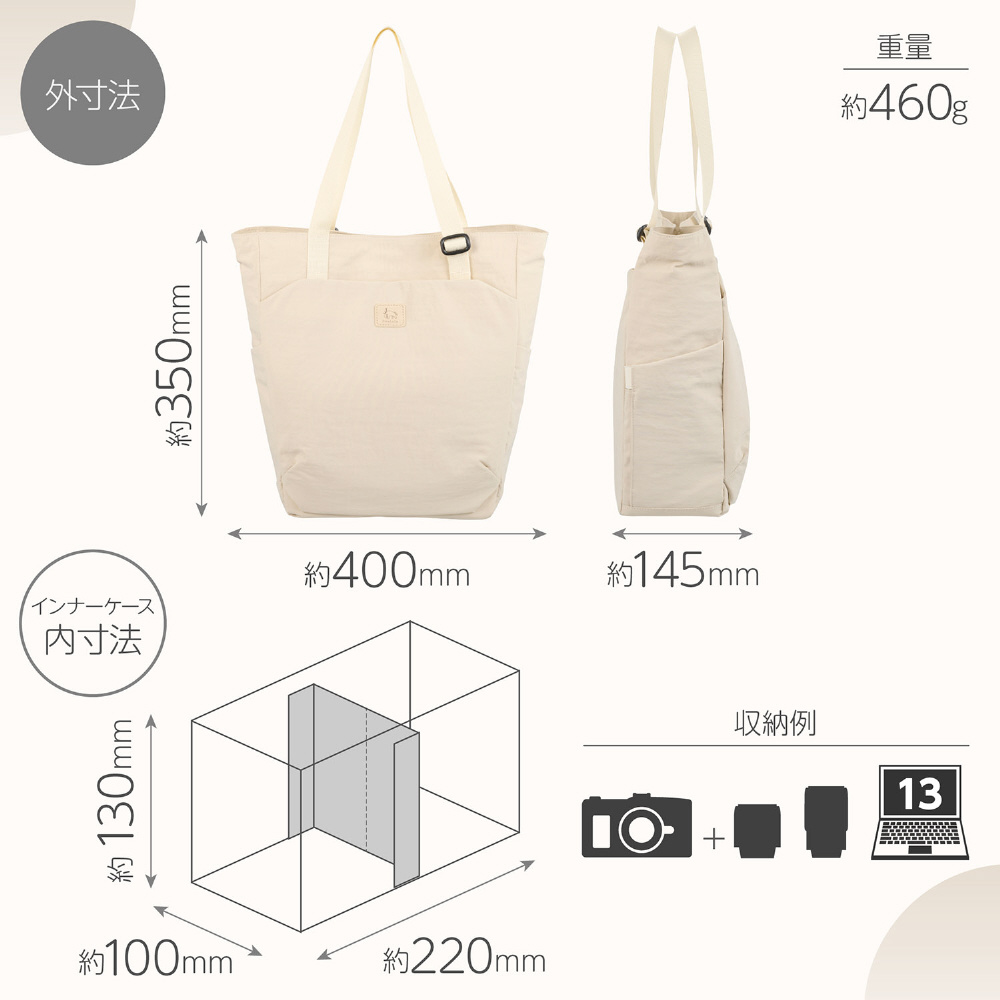 やさしい手触りで普段使いもしやすいインナーケース式の2WAYカメラトートバッグ