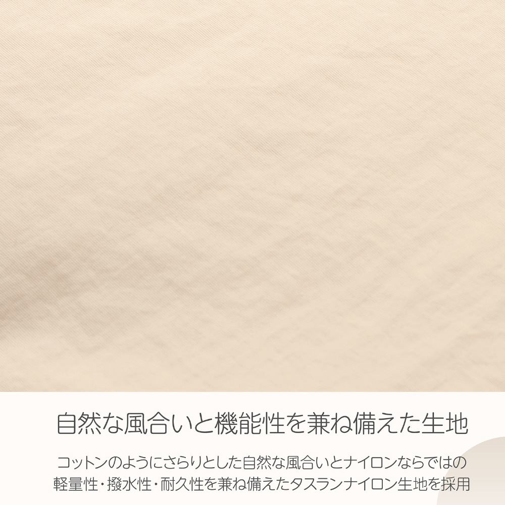 コットンのようなナチュラルな風合いと、ナイロンの優れた機能性を兼ね備えたタスランナイロン生地を採用したカメラバックパックです。