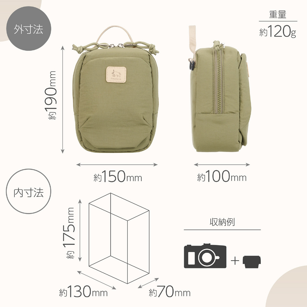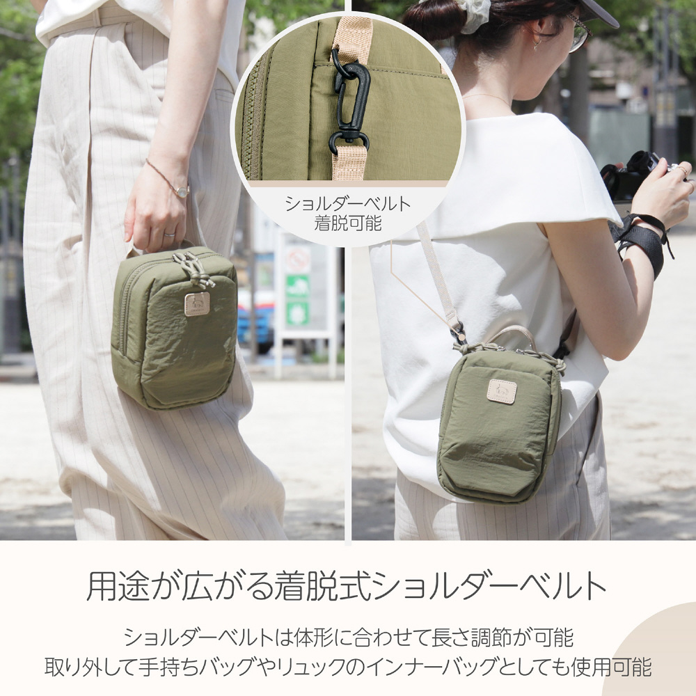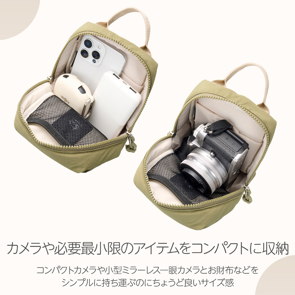 コンパクトカメラとスマートフォンなど、必要最小限のものを収納するのにちょうど良いサイズ感で、毎日のお出かけにぴったりです。