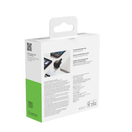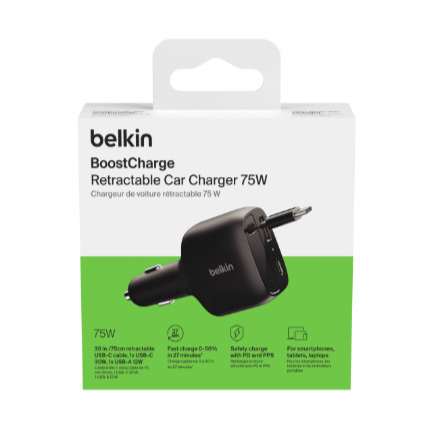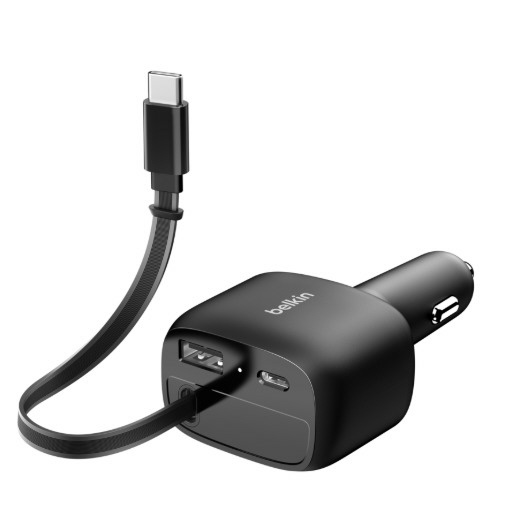BoostCharge 75W 3ポート車載充電器USB-C巻き取り式ケーブル付き / USB-C + USB-A / PD対応 CCC001fqBK CCC001fqBK