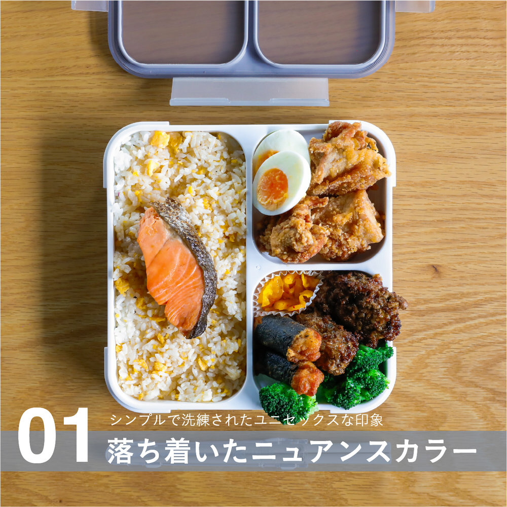 薄型なので、お弁当というよりランチプレートのように食事を楽しめます。内側はオフホワイトなので、食材の色が際立ち、お弁当がより美味しそうに見えます。
