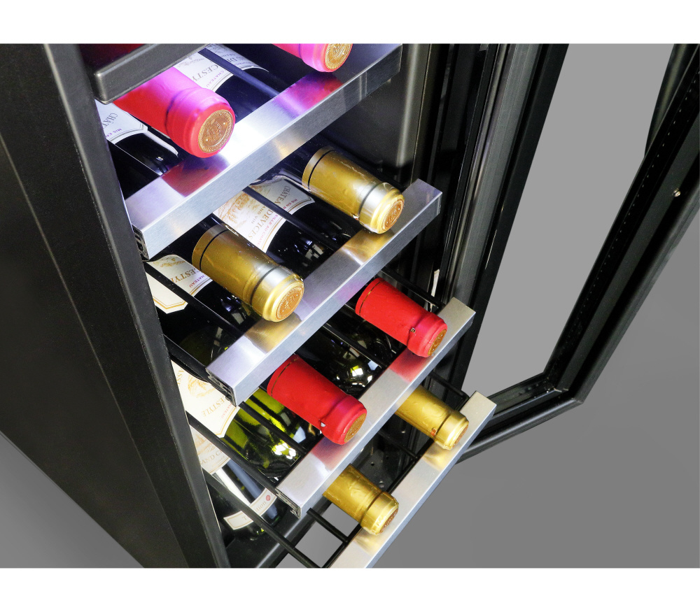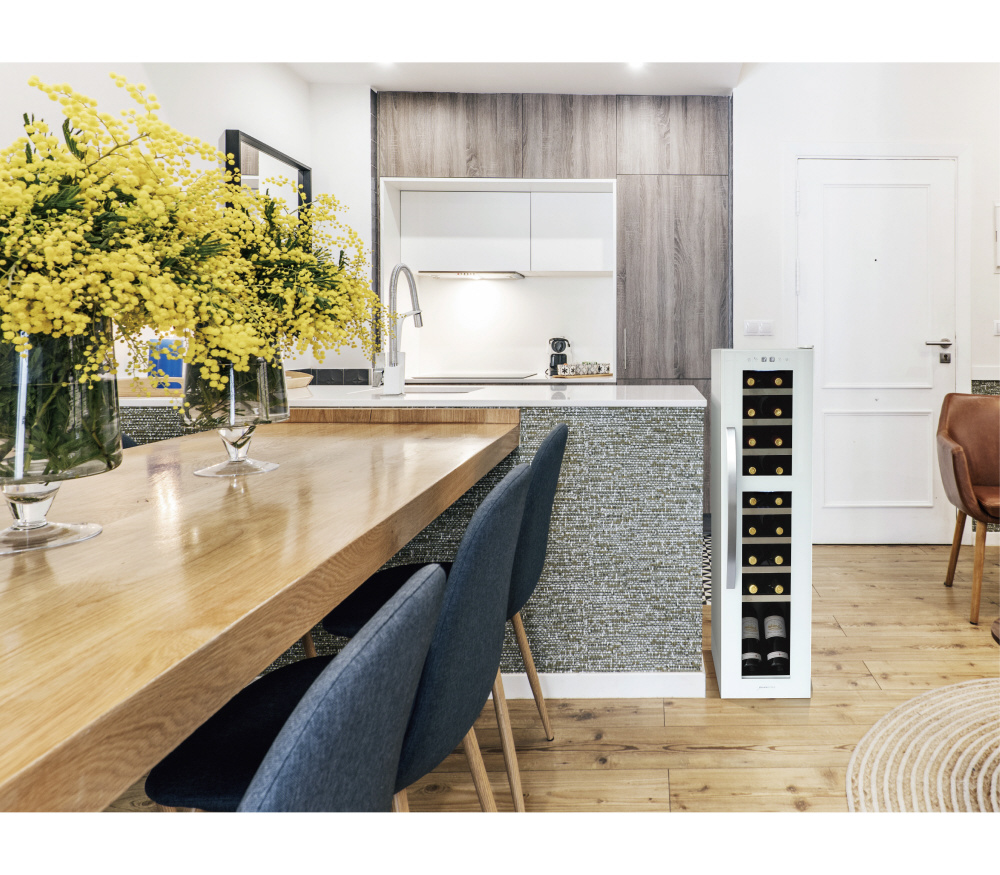 ちょっとしたすき間にも据え付け可能な幅わずか290mm*のスリムボディ。ブルゴーニュタイプのボトルも収納可能な余裕の棚ピッチ90mm。