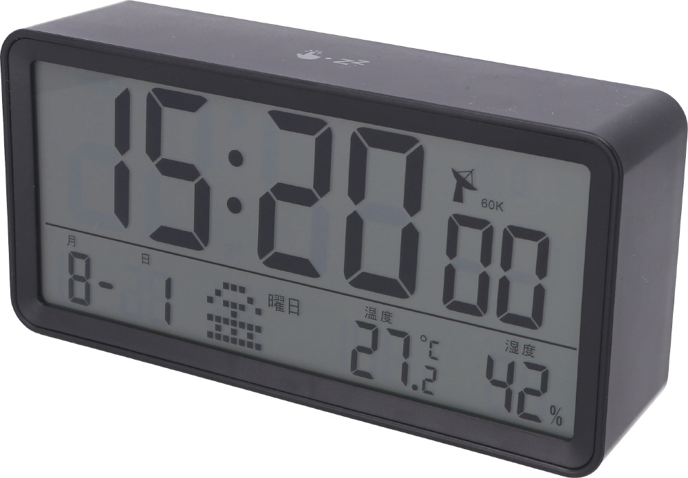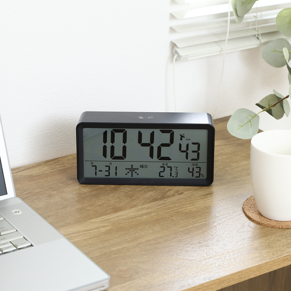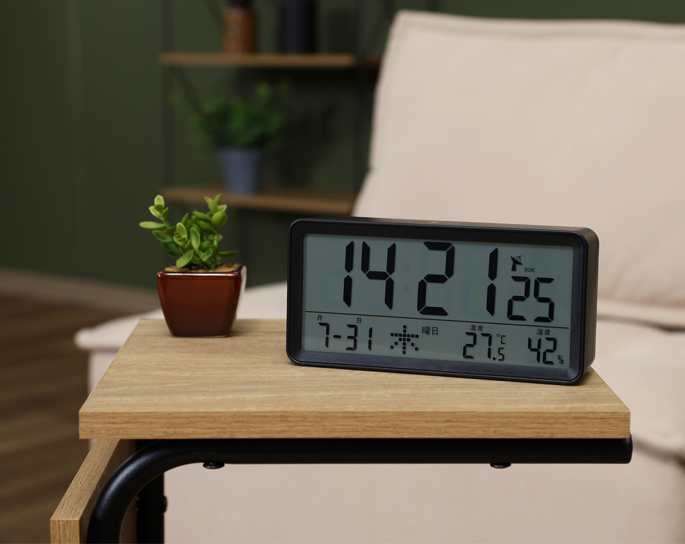 時刻・日付・曜日・温度・湿度が1画面で確認できます。