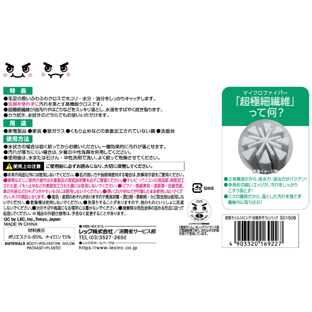 激落ちくん リビング・洗面おそうじパック  ふわふわマイクロファイバー<リビング・浴室用> 6枚入り S01506