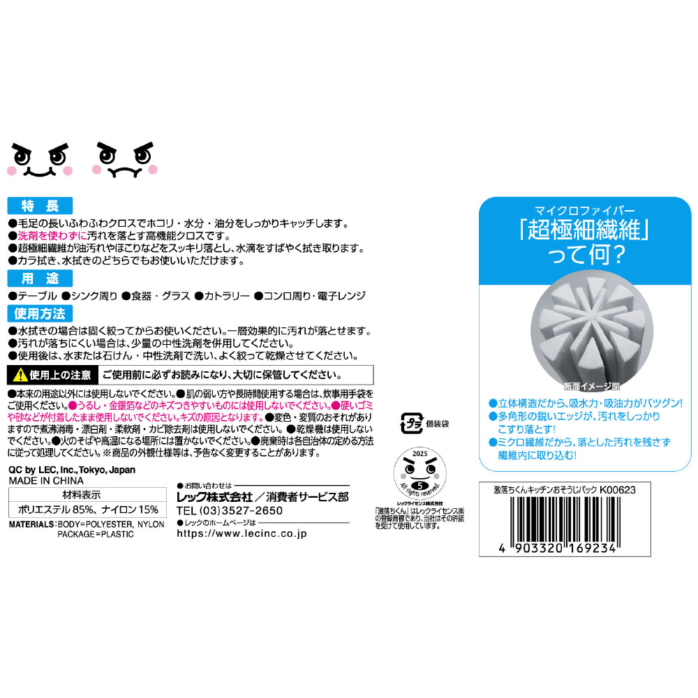 激落ちくん キッチンおそうじパック ふわふわマイクロファイバー<キッチン用> 6枚入り K00623