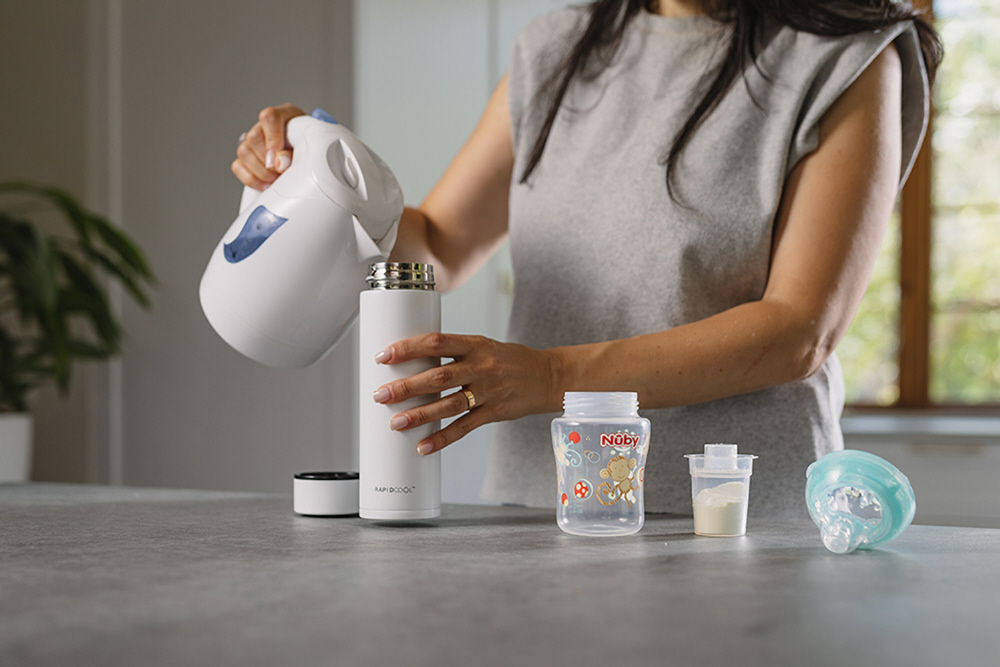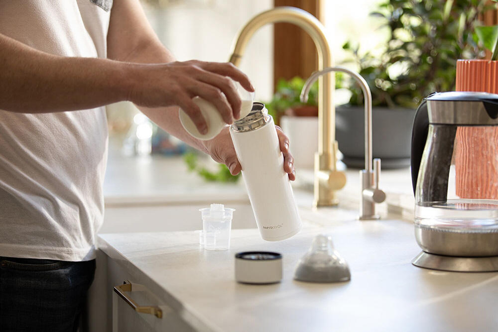 RapidCool に沸騰したお湯と粉ミルクを入れてシェイクするだけ。