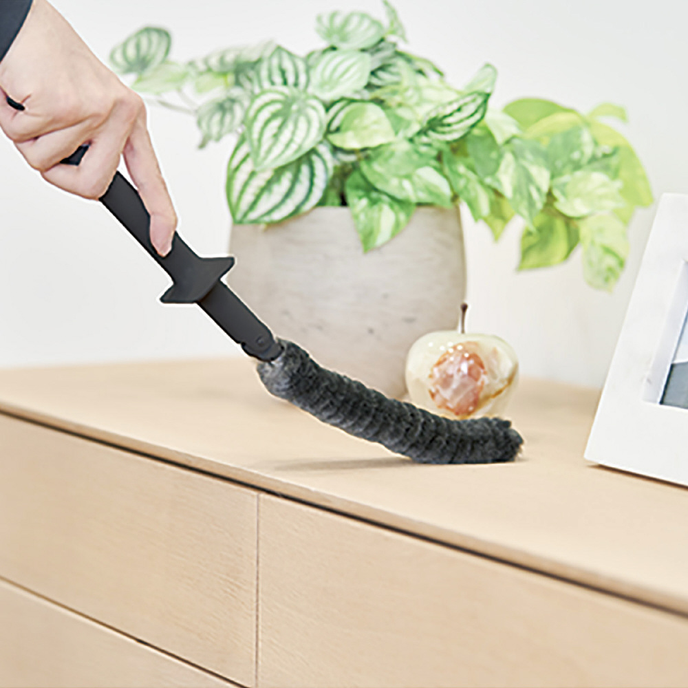 ●引っぱるだけで柄を伸ばせます。手の届きにくい高いところや、家具・家電のスキマなどに便利です。
