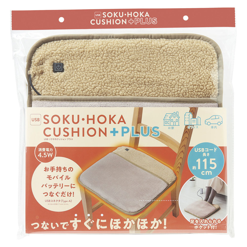 【ソクホカクッションプラス】は、USB接続するだけですぐに暖まる電熱クッションです。