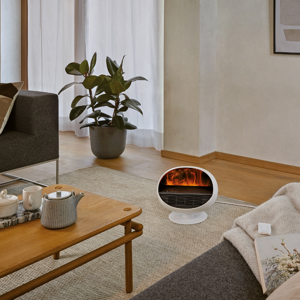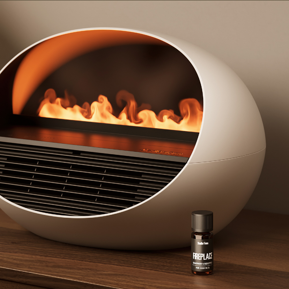 Erik は、ファンヒーター・電気暖炉・アロマディフューザーをひとつに融合しました。