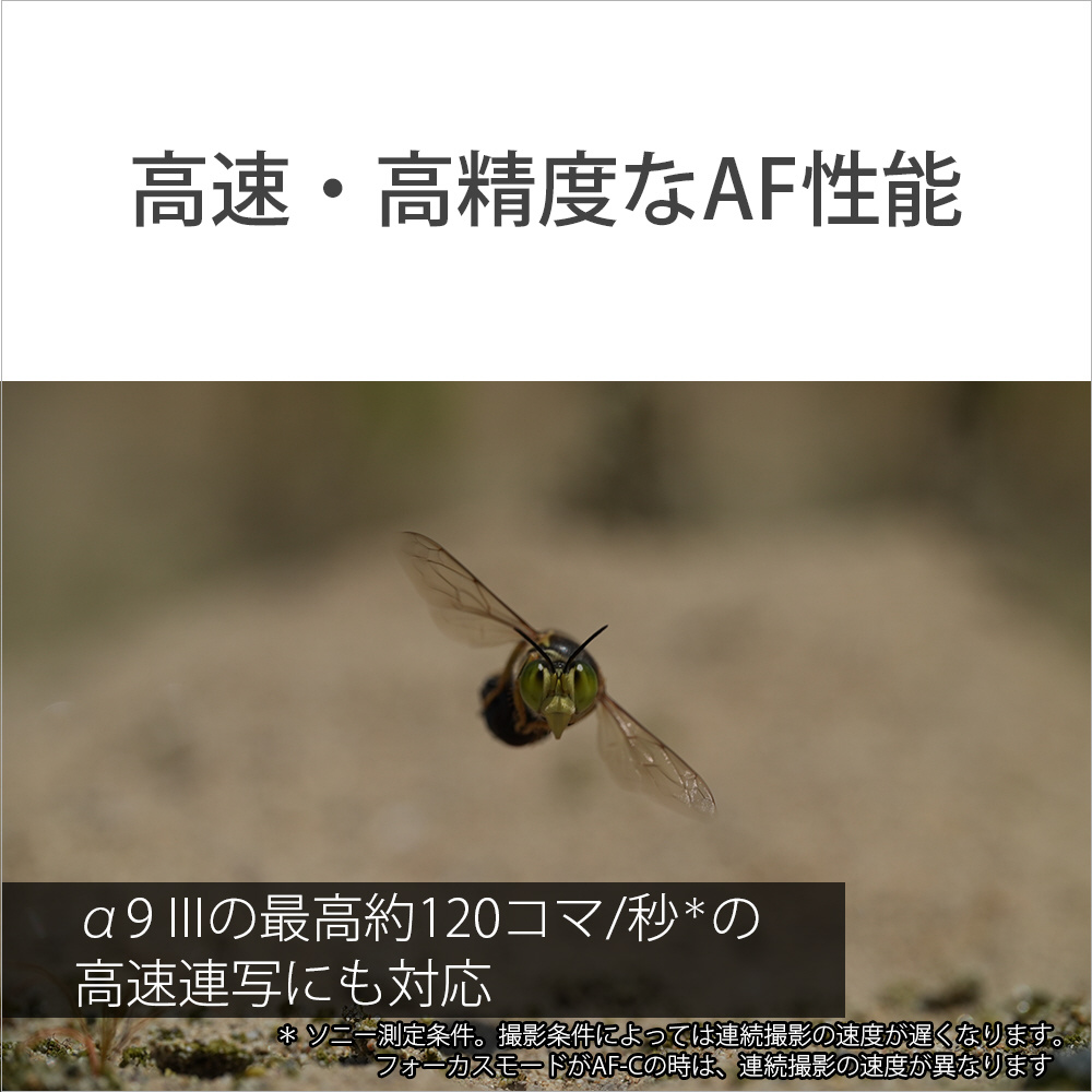 *3 ソニー測定条件。撮影条件によっては連続撮影の速度が遅くなります。フォーカスモードがAF-Cの時は、連続撮影の速度が異なります