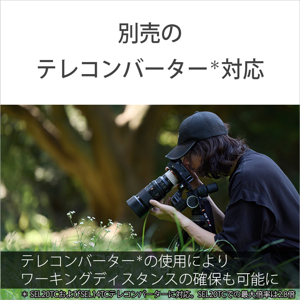 * SEL20TCおよびSEL14TCテレコンバーターに対応。SEL20TCでの最大倍率は2.8倍