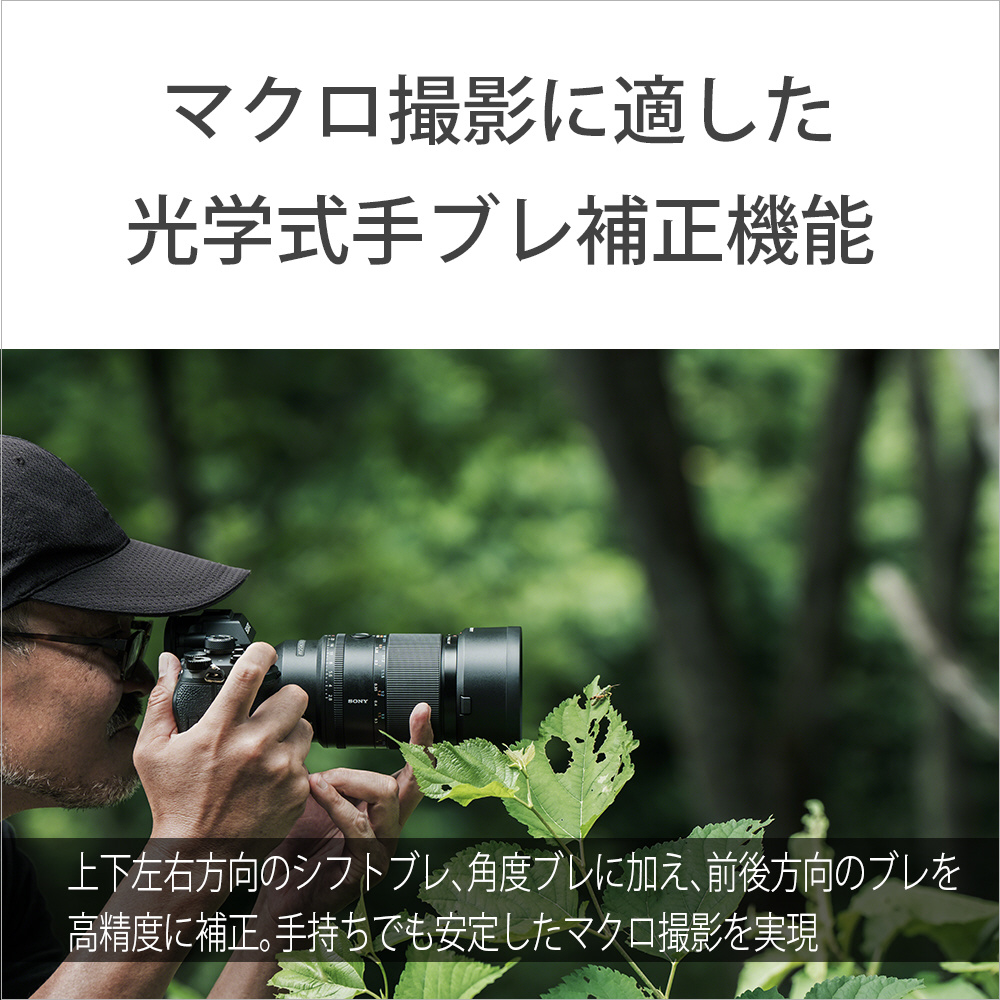 ●マクロ撮影に適した光学式手ブレ補正機能搭載。上下左右方向の角度ブレ、シフトブレ、前後のブレを高精度に補正。手持ちでも安定したマクロ撮影を実現