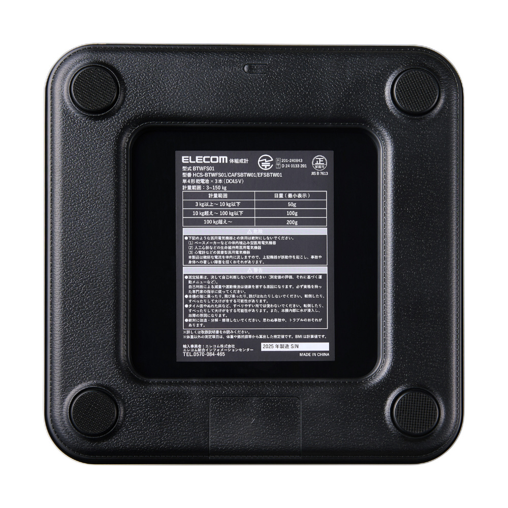 体重計 体組成計 Bluetooth/Wi-Fi対応 スマホ連動 13項目測定 体脂肪率 / BMIなど ヘルスメーター iOS/Android対応 ELECOM Healthcareアプリ連携 筑波大学共同開発 ブラック CAFSBTW01BK